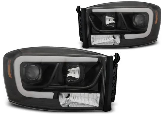 ФАРЫ ПЕРЕДНИЕ ЧЕРНЫЕ С ДИОДНОЙ ТРУБКОЙ ДЛЯ ДОДЖ РАМ