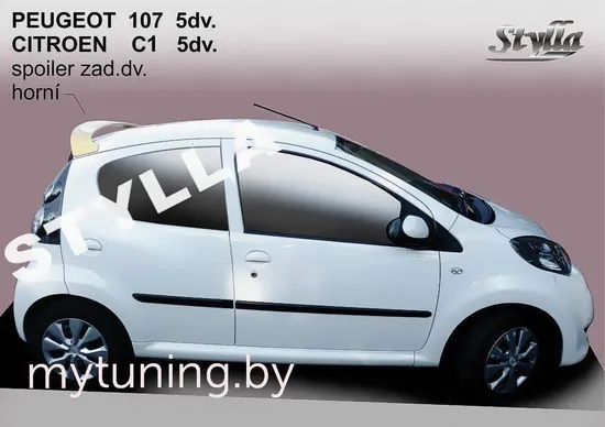 Спойлер Peugeot 107 5 door. Устанавливается на автомобиль Пежо 107 5 двери с 2005 года по настоящее время