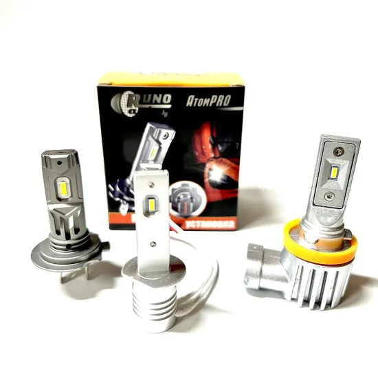 Цоколь H: H1Характеристики:Цоколя: H1, H3, H7, H11, HB4, H27 (880), HB4, PSX24, P13WПитание: 12 – 24VПотребляемая мощность: 50WЦветовая температура: 5500KСветовой поток: 3400Lm (1700×2)Медный сердечник для лучшего рассеивания теплаКомпактные светодиоды Atom PRO – полностью повторяют размер галогенной лампы, простая установка, правильная СТГ, отлично подходят для ПТФ. ЦЕНА за КОМПЛЕКТ!